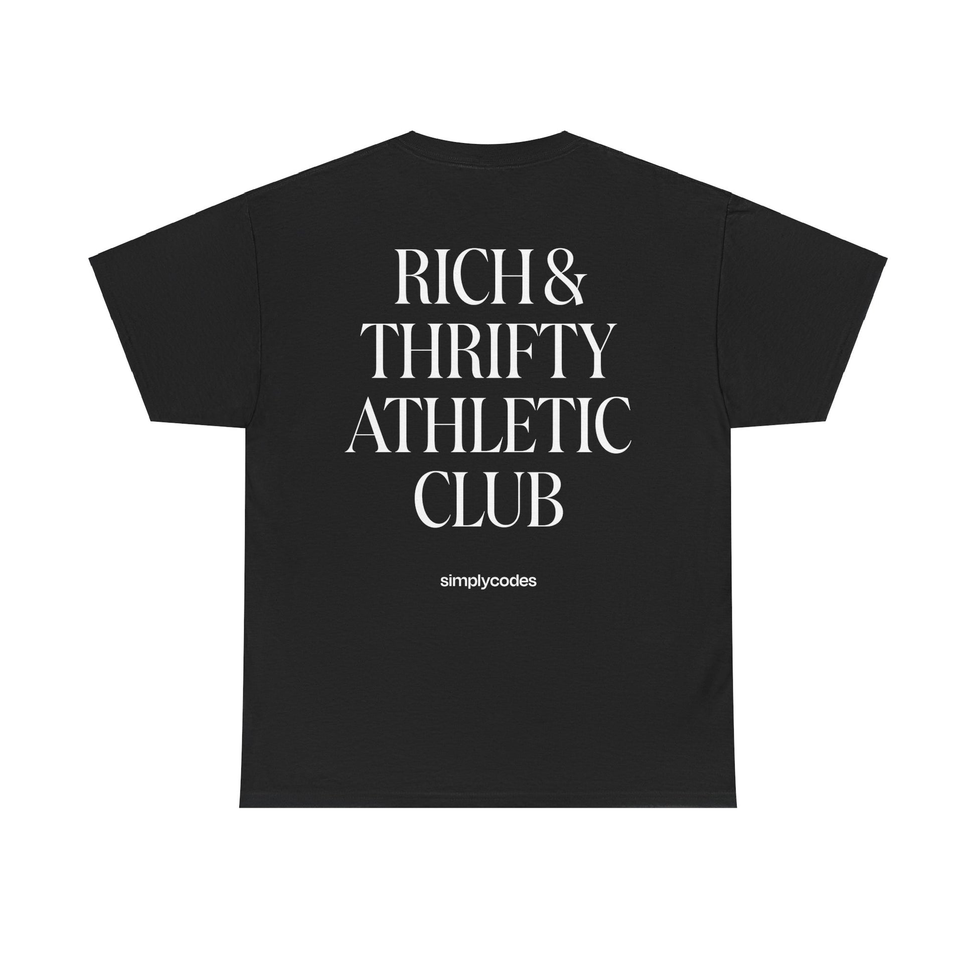 - Bold "RICH & THRIFTY ATHLETIC CLUB" text on back